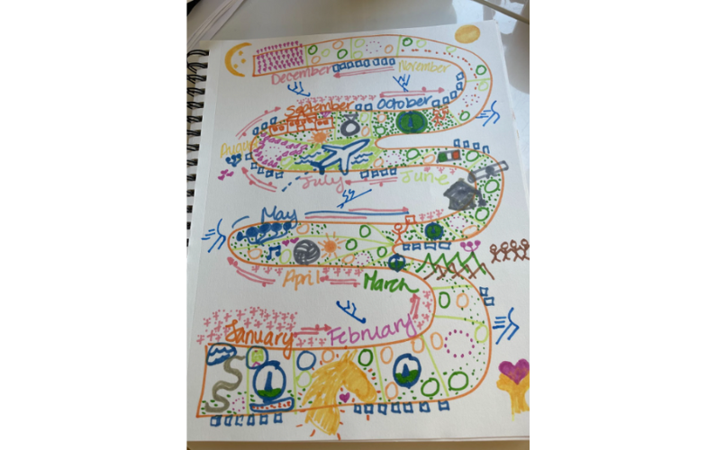 If you decide to play with this idea, which I hope you will, because it’s playful and fun and lets you see your goals unfold over time rather than holding all at once as if time is not a parameter. It also lets you see them as a journey, not an end point, interwoven with your life. Leaving white space gives you permission to add as you go. After all, it’s your map, and you are the mapmaker.